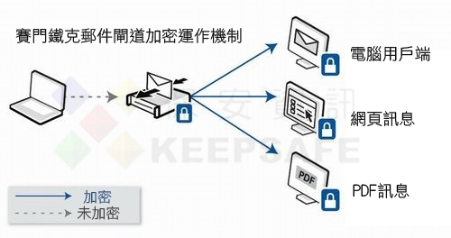 • 閘道(Gateway)電子郵件加密:在您的合作夥伴與客戶間的安全通訊