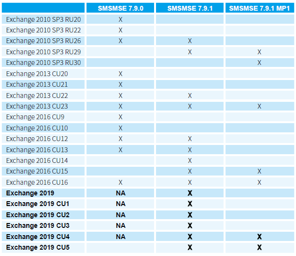 - Microsoft Exchange ServerR 2013, 2016, 2019 (Mailbox, Edge Role, 64-bit)。