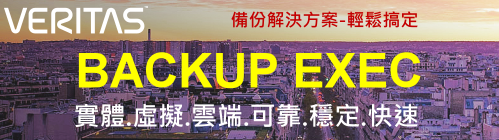 Veritas Backup EXEC 簡稱:BE。是一套已經運行超過20年的標準主從架構(Client-Server),同時也靈活支援虛擬環境的無代理(Agent-Less)及代理(Agent)程式的備份解決方案。一直以來,都是最多企業使用的備份解決方案。依需求才啟動的廣泛代理程式與選項,同一套解決方案就能保護當今最多的實體與虛擬伺服主機或雲端平台、應用系統及資料庫,並保障企業成長的可擴充性。單一管理主控台就能即時完全掌握企業內所有資料保護的能見度,更能免除使用多種不同的備份系統所導致的建置、管理、維護、技術養成、教育訓練、廠商聯繫成本及降低操作複雜性,大大節省IT人員的時間以利IT核心業務的推展。